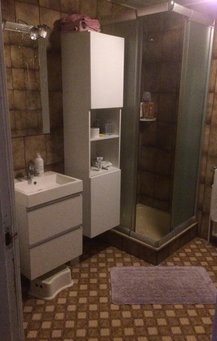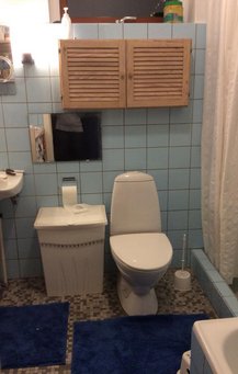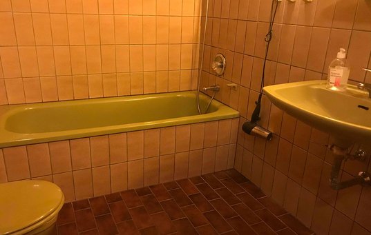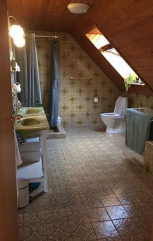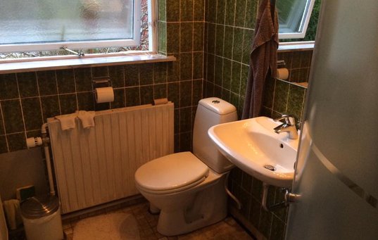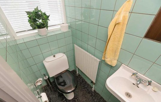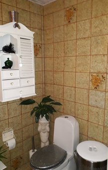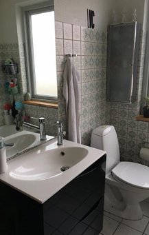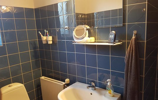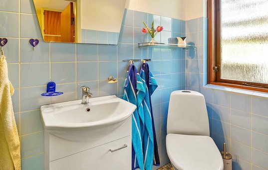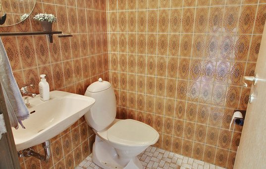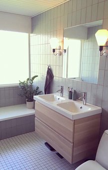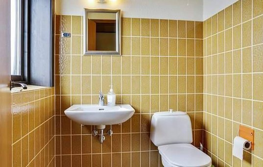 – De gamle fliser kan give badeværelset noget stemning. Prøv at give dem en chance, og så kan du modernisere det samlede udtryk, fx med et moderne toilet eller badeværelsesmøbel, et stort spejl på væggen, håndklæder i samme nuancer – det er også billigere, lyder det fra Tine Nielsen.