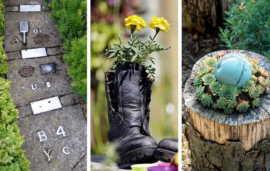 Skab en personlig og spændende have ved kreativt at genbruge naturens egne materialer.