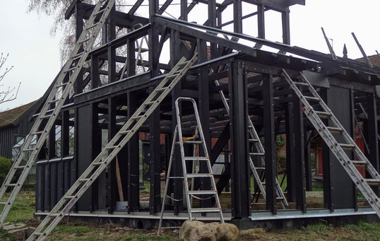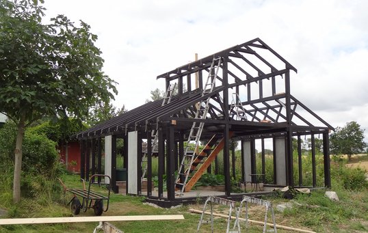 Det har været en lang proces at få bygget drivhuset færdigt, da Helle og Per selv har gjort det meste af arbejdet, kun med lidt ekstra hjælp udefra til specielle opgaver som smede- og elarbejder.