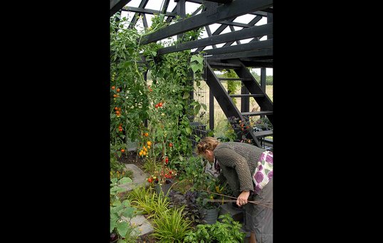 Helle havde et stort ønske om et udkigstårn, og derfor endte drivhuset med at blive i to etager med indvendig trappe.