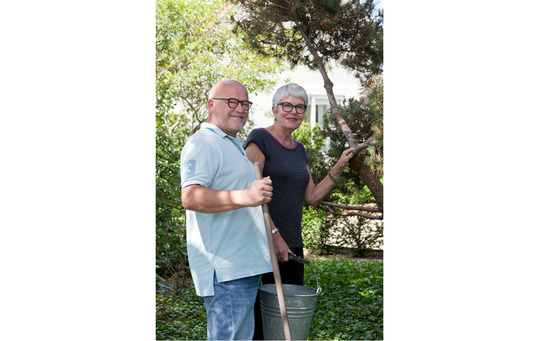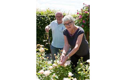 Han og Jessie er i haven, så snart vejret tillader. I det tidlige forår bruger de orangeriet, senere indtages morgenmaden på terrassen mod øst, sydterrassen er god til aftenophold, og rosenhaven er skøn både i formiddagens sol og eftermiddagens halvskygge. De sidder dog ikke så meget, når de er i haven. Der er altid noget undervejs.