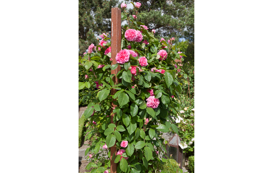 En rosenhave ligger som en have i haven. Her er fine rosenbede kantet med lavendel og buksbom og en lille siddeplads. Rundt om hele rosenhaven har Jessie og Mogens opsat et hegn af rustent rionet, som klatreroserne vokser på. Det rå jern står i flot kontrast til de yndefulde og romantiske roser og går igen i hegn, plantekasser og i en udendørs ovn. Idéen har de fra et besøg på det årlige Chelsea Flower Show i London.
