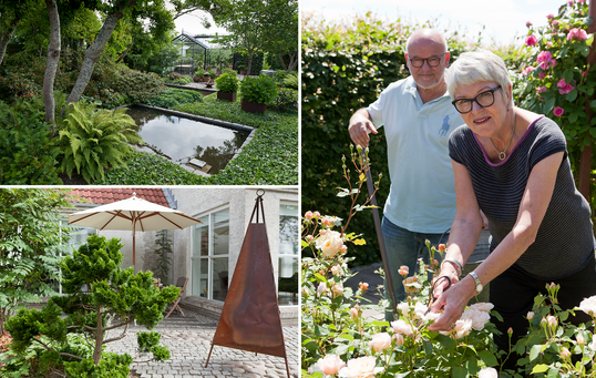 Jessie og Mogens Hallas har selv anlagt deres have lige fra bassiner til belægninger og bede. Det har ikke alene krævet kræfter, men også en stor portion grundighed og akkuratesse.