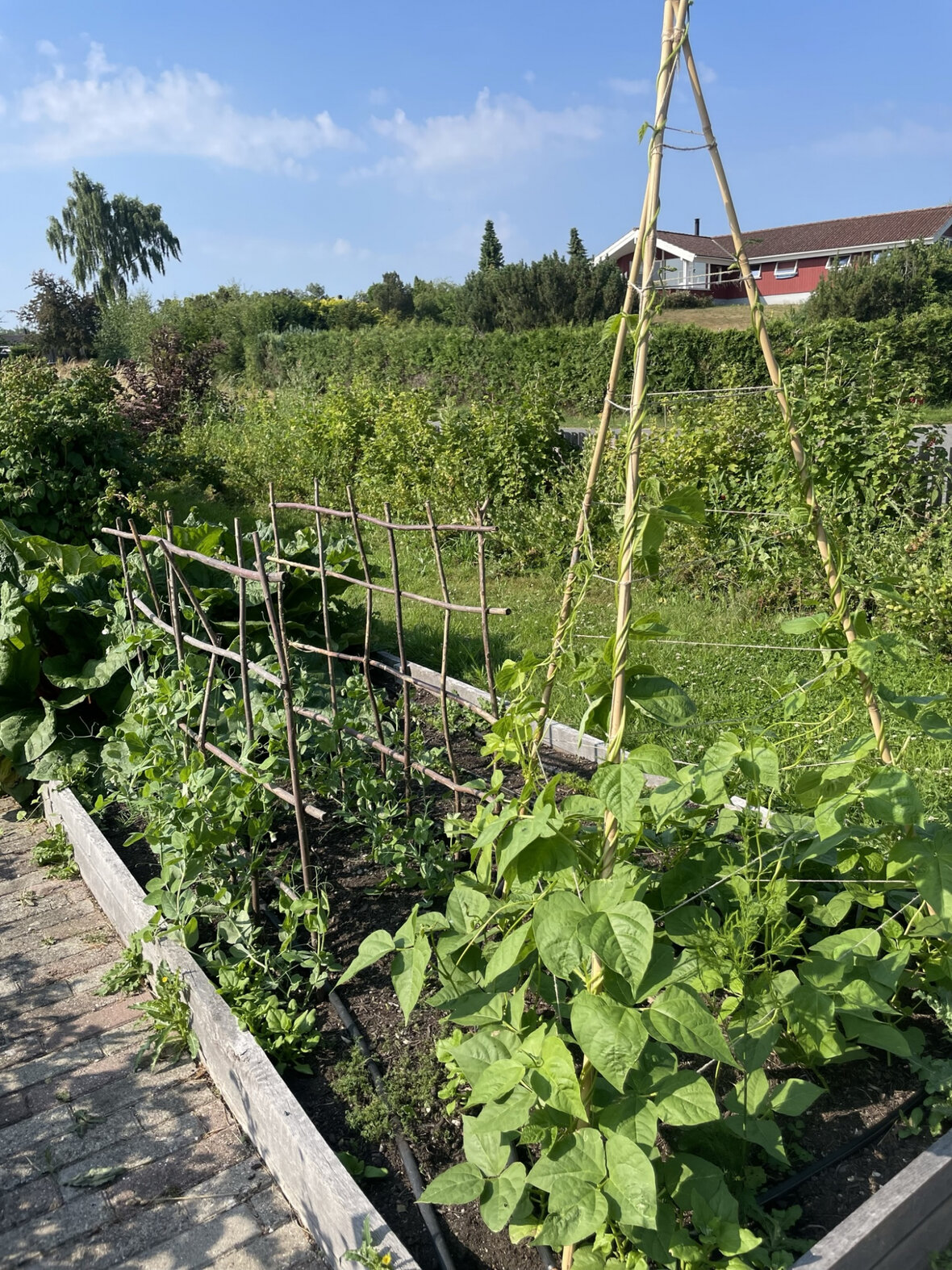 Det bør ikke være en permanent løsning, der stilles op, da du helst bør dyrke bønner et andet sted næste år. Så du skal gerne kunne tage stativet ned, så du kan genbruge det næste sæson.