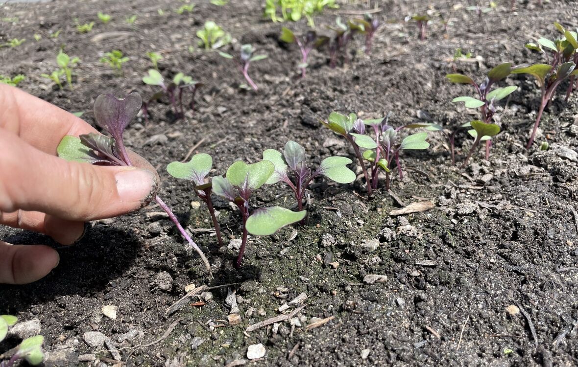Det er også ved at være tid til at tynde ud i planterne. Hiv forsigtigt alle overflødige planter op, så der kun står de planter tilbage, der skal vokse sig store. Kig på frøposen og se, hvad den anbefalede afstand mellem kålene er, og fjern de overskydende planter.