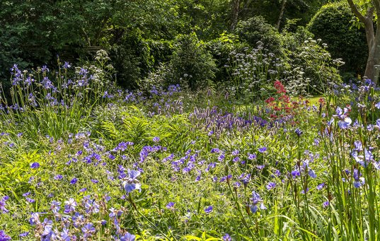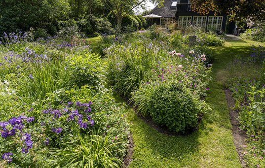 På den måde sker der ikke store forandringer fra år til år, og havens bede holder sig smukke uden at kræve omplantning. Fordi planterne står tæt – og vilde planter desuden er velkomne – er lugning heller ikke noget, Tony bruger meget tid på.