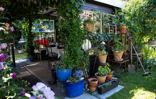 Hun viser om bagerst i haven, hvor hun er i gang med sit nyeste projekt: at beplante det stykke jord, hvori hendes afdøde kæledyr ligger begravet. Det var fyldt med skvalderkål, som hun har trukket stædigt op og udskiftet med efeu som bunddække og sankthansurt, der ikke kræver pasning.