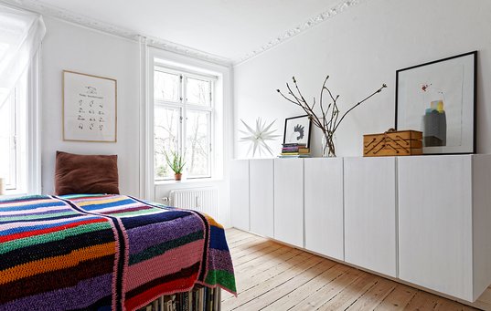 Pia kan godt lide farver i sin boligindretning og kunst, men helst ikke på væggene. Så hellere bruge farverne fleksibelt på skiftende billeder, tæpper og andre genstande.
