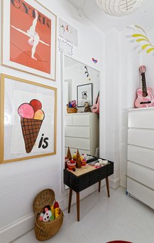 Da hun flyttede ind for fem år tidligere, var lejligheden langtfra perfekt. Men et nyt køkken, en gang maling og afhøvling af gulvene gjorde den til en passende ramme om Pia og datteren Silles liv. Hendes mor er ikke i tvivl om, at kvarteret her er børnevenligt trods det livlige natteliv.