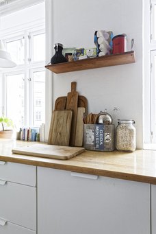 – For mig behøver indbo ikke være dyrt og trendy design. Billige brugte møbler og sager fra loppemarkeder kan være lige så kønne. Jeg kan ikke finde på at bruge en masse penge på mit indbo. Min datter går også i genbrugstøj, for hun vokser jo hurtigt. Om genbrug vil jeg sige, at det næsten er pænere i kraft af, at det har en historie og nogle år på bagen. Møbler fra Ikea kan få noget ekstra kant ved at blive mikset med det ældre. Mit fem år gamle køkken fik fx en gammel bordplade. Jeg foretrække også oprindelige gulve med skrammer på i stedet for nye gulve, som virker så ferske.