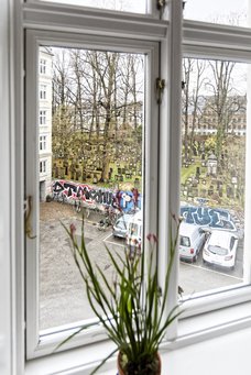 – Her er liv – også om aftenen. Men du kan også trække dig tilbage til ro og stilhed i lejligheden eller nede i den grønne gård med legepladsen. Det er dejligt at kunne fornemme og høre byens lyde nede fra gaden og på samme tid bo i denne beskyttede trekant af bydelen.