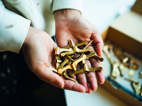 – Vi piller også alle hængslerne af vinduerne, og så renser jeg dem. De er af messing. De er sindssygt flotte indenunder; de er bare blevet malet over så mange gange. Og de er her, fordi en arkitekt har tænkt, at sådanne hængsler skulle lejligheden have. Hver gang man frarøver lejligheden den slags detaljer, så ødelægger man lidt arkitektens tanker bagved, forklarer hun.