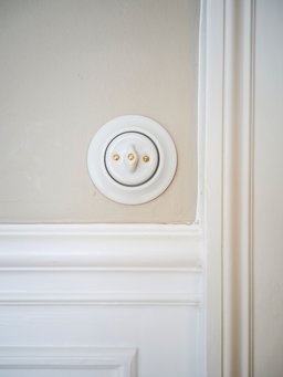 Alle fatninger i lejligheder, både lampeudtag og stikkontakter, bliver udskiftet med nogle i porcelæn, som hun har fået specialfremstillet på en fabrik i Tjekkiet.