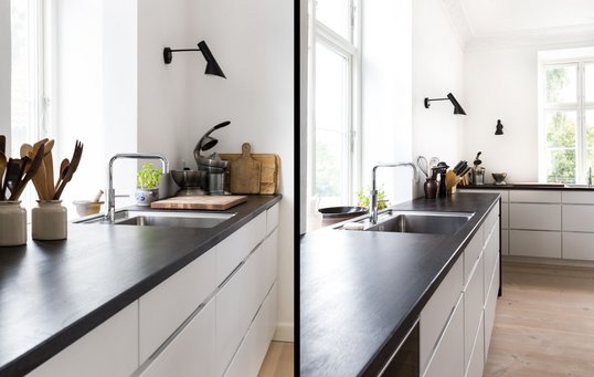 En ø definerer hvor køkken- og spisezone adskilles. Foto: Julie Vöge