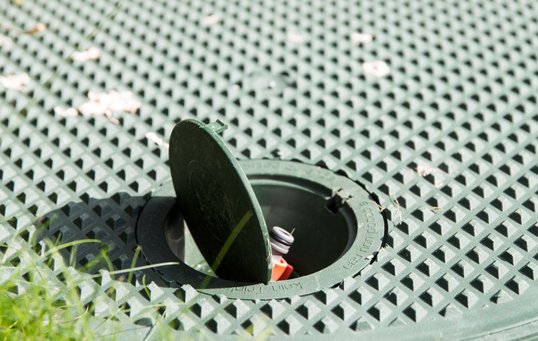 I haven er der nedgravet en stor vandtank, hvor al regnvand løber i. Vandet bliver brugt til at vaske biler, til at vande haven samt til toiletterne og vaskemaskinen. Foto: Julie Vöge