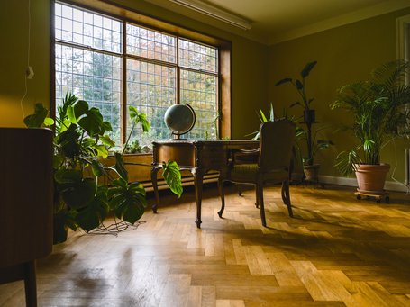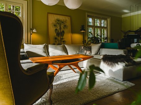 Det var lige noget for familien Skouboe-Neergaard, der faldt for husets unikke og uspolerede stil. I huset er alle døre og gerigter originale, der er gamle parketgulve og forsatsvinduer, og parret skulle kun skrælle ét lag tapet væk, før de var nede ved den oprindelige farve på væggene. Huset har med andre ord på forunderlig vis undgået de ofte ødelæggende storrenoveringer, der blev foretaget i 1970’erne og 1990’erne.