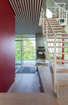 – Her flyder niveauerne sammen, fordi der er tale om et indskudt dæk, hvor der er kontakt med stueetagen. Det betyder, at begge niveauer bliver brugt meget, og at hele huset bliver sammenhængende, forklarer Steen.