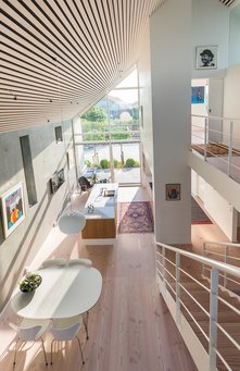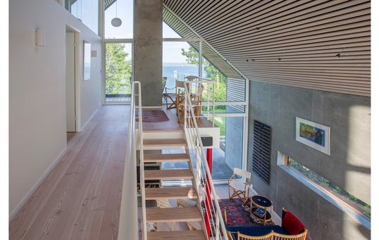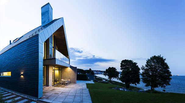 Udover at husets bærende konstruktioner former et P set fra vandsiden, så er der også mange maritime referencer lavet med stor raffinement og fantasi, ligesom boligen gemmer på mange detaljer, der giver en ekstraordinær helhed.