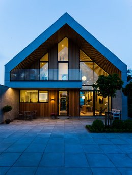 Villa P hedder huset, hvis bærende konstruktion er formet som bogstavet P og dermed lader halvdelen af boligen være gennemsigtig, så den betagende udsigt over vandet er intakt fra ankomstsiden af bygningen.