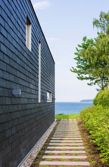 – Vi foreslog selv beton og træ, og da arkitekten tilføjede skifer på facaden, tog vi den til os med det samme. Overordnet set var vi i vores ønsker meget inspireret af Friis & Moltkes enkle arkitektur, der samtidig byder på en masse gode detaljer. Et miks vi godt ville have overført til vores hjem. Det er arkitekten lykkedes med til fulde, siger Kirsten.