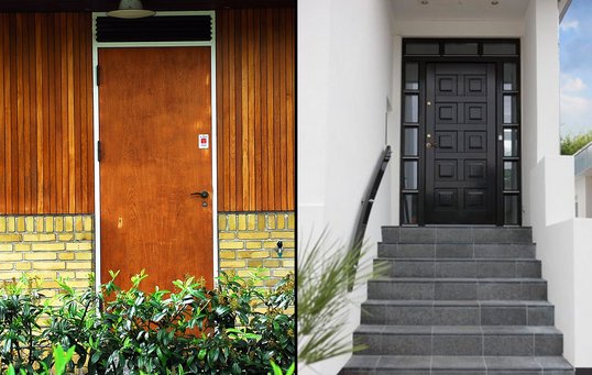 Få inspiration i billedserien her, hvor vi har samlet en række hoveddøre - lige fra de enkle til de pompøse.