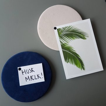 Boligblogger Nadja Helena Daher giver opskriften på nogle supernemme miniopslagstavler på sin blog ”My Home My Playground”. Tavlerne er lavet af Ikea Heat bordskånere, som er blevet beklædt med møbelvelour og derefter klistret på væggen med dobbeltklæbende tape. Find guiden her.
