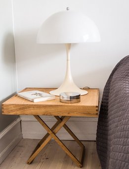 - Når jeg ser på et møbel, kan jeg godt lide, hvis jeg kan fornemme håndværket. Fornemme at der er en person, som har brugt tid på at få et design til at hænge sammen ud over det sædvanlige. Derfor er flere af fx vores stole klassikere af Wegner, Thonet, Børge Mogensen og Eva og Nils Koppel. Det er klart, at når jeg så selv laver et møbel, så føjes der automatisk en ekstra dimension til genstanden, som gør mig stolt og glad, siger Jeppe.