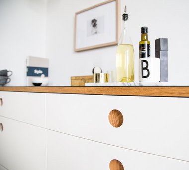 Jesper har selv designet skuffernes greb, dog med lidt inspiration fra 60érne. Foto: Julie Vöge
