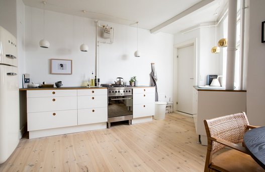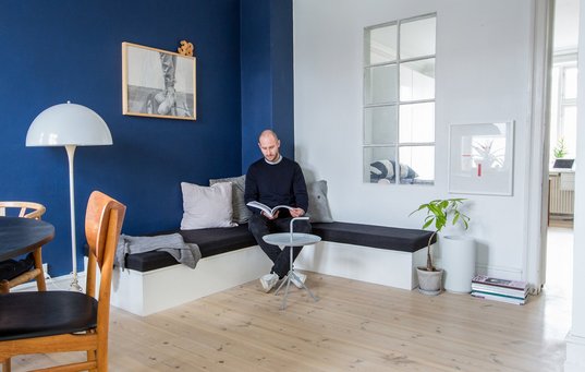 Han tilføjer, at det bedste ved den lille lejlighed klart er lyset, som ikke har besvær med at finde ind ad vinduerne, fordi der er tale om fjerde sal. Og så elsker han kvarteret, der selv om vi taler indre Østerbro er lidt landsbyagtig: