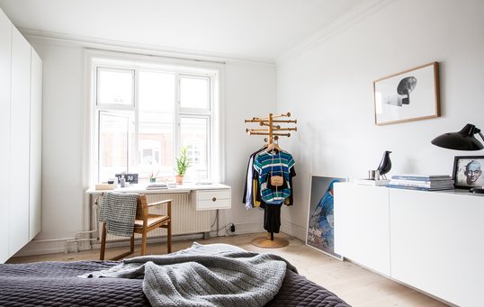 Ud over køkkenet bærer resten af den lille Østerbro-lejlighed præg af, at her bor en person, der har tænkt over at udnytte hver en kvadratmeter mest optimalt og gøre det på en pæn måde samtidig.
