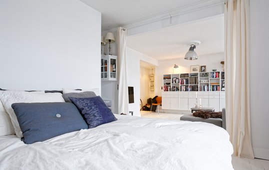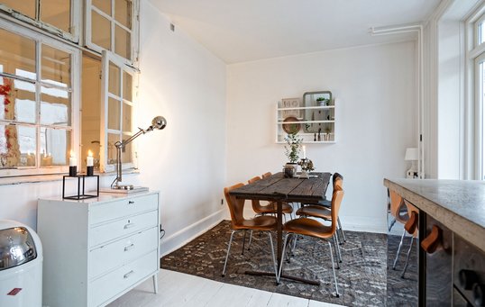 Kun få døre – i lejligheden er der kun dør ind til badeværelset. Ved at droppe døre mellem rummene lukker du maksimalt lys ind og får gennemlyst lejligheden.