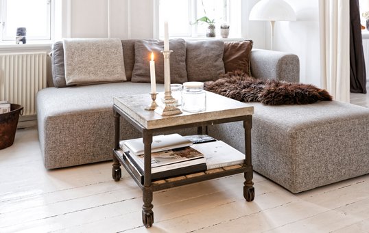 – Min kæreste er glad for lækkert dansk design og møbelklassikere som Arne Jacobsens læderpolstrede 7’er-stole, som han har haft i årevis. Han kan også lide klassisk design som Mogens Lassens Kubus-stage fra 1962 og Georg Jensen-korpus i sølv. De ting dæmpes en smule af det, jeg vil kalde genbrugsminder. Det er blandt andet et arvet tobaksskab, en antik fransk staldport som spisebord og et par gamle Ilva-jernborde med betonplade på det ene som sofabord, fortæller Josefine, som ofte ser indretningsmuligheder i ting, der er tænkt til helt andre formål.