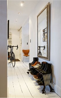 Hun har også fundet på flere detaljer, som understøtter hendes hang til rå industristil, der samtidig peger i en nostalgisk retning. Et eksempel er hullet i væggen ved den tidligere dør mellem spiseplads og entré.
