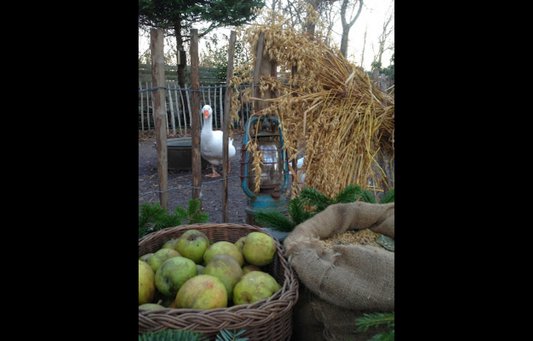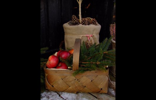 Hvis du har gemt æbler fra efterårets æblehøst, kan de sættes på en kraftig snor og hænges som røde perlekæder rundt om i haven. Udover at pynte, tjener æblerne også som foder til de sultne fugle. Æblerne er også dekorative i gamle kurve.