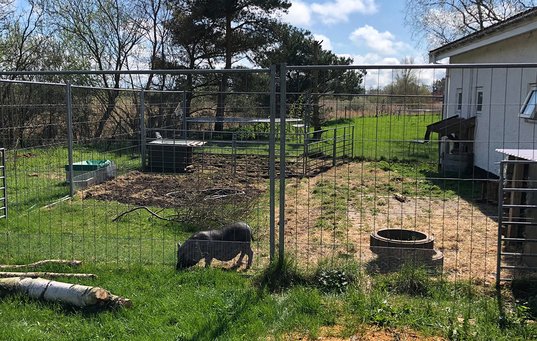 - Mille er en gravko uden lige. Vi flytter hendes indelukke hver anden uge, fordi hun har gravet det hele igennem og vendt alt græsset, så der kun er jord tilbage, forklarer Charlotte Krogh.