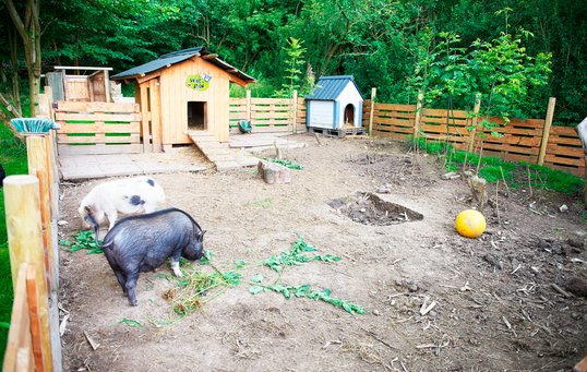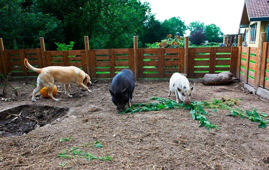 I dag går begge grise ude i indhegningen, hvor de roder og snasker i jorden dagen lang. Det gælder om at huske at lukke lågen, for ellers er Egon og Werner hurtigt ude på skovtur. I efteråret spiste de en stor del af havens nødder efter et uheld med en åben låge.