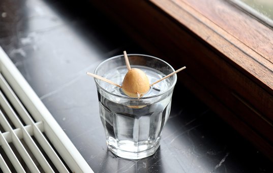 - Sæt stenen i et glas vand, så den er halvt dækket og med den runde, flade side nedad (hvor avokadoen har siddet fast på træet). Stil den et lyst sted – fx i en vindueskarm – men ikke med for stærk sol. Skift vand en gang imellem – gerne en gang om ugen.