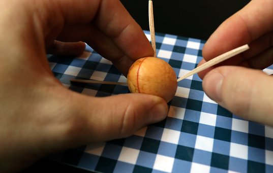 - Stik en tandstik få millimeter ind i hver side af stenen, hvor den er mest glat, så du ikke sætter den, hvor der er streger/markeringer i frugten, som er der, hvor den deler sig, når den spirer. Du kan også vælge bare at lægge stenen direkte i en potte med lidt så- og priklemuld og dække den let til.