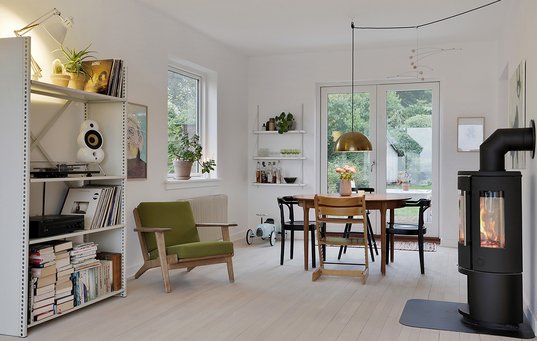 - Det er virkelig rart, når hele familien er samlet i stuen, og vi har tændt brændeovnen og sidder og kigger ud på byen og vandet. Der kommer huset rigtig til sin ret, fortæller Dan Hjernø.