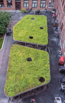 Gården er et studie i det bedst mulige og i kompromiser. Et godt eksempel er det nye cykelskur. Der er 260 cykler og 10 kassecykler i foreningen, og da der bliver stjålet mange cykler på Nørrebro, skal de helst ikke stå ude. I gårdens mindst solrige del er der derfor lavet en overdækning med plads til 100 cykler. Kassecykler skal dog stå langs husmuren, og i kælderen er der plads til flere cykler. Der var ikke plads nok til cykler før, det er der heller ikke nu, men pladsen bliver udnyttet effektivt. Cykeloverdækningen har i øvrigt grønt tag efter ønske fra de beboere, der har vinduer over cykelskuret.