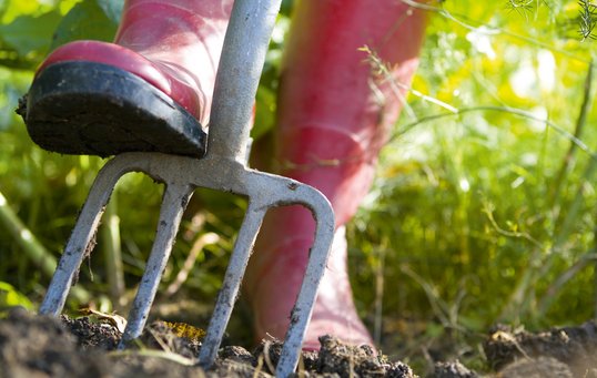 Vend jorden med en spade eller fræs de steder, hvor der har stået grøntgødningsplanter over vinteren.