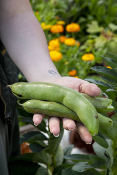 – Det er virkelig lækkert, forsikrer Karina Lærke Sørensen Lillie, der har sine fødder plantet i mørkegrønne gummistøvler og overkroppen svøbt i en termovest, som lader armene fri til at arbejde i køkkenhaven. Hun går rundt mellem rækkerne i sin køkkenhave, hvor fenniklerne får selskab af gulerødder, hestebønner, løg, græskar og mange flere struttende grøntsager. Mellem afgrøderne er der udsyn til bar jord – stort set uden skyggen af et stykke ukrudt.
