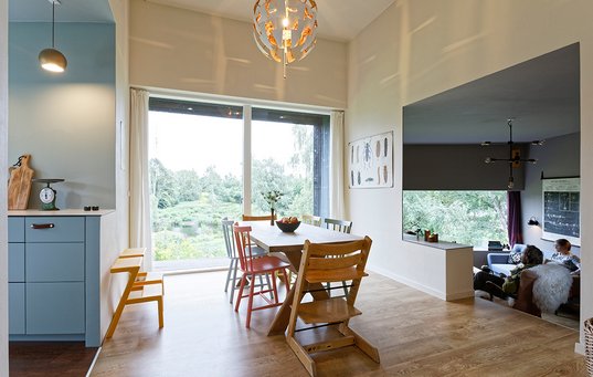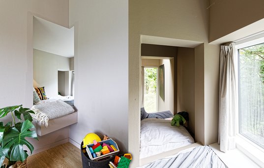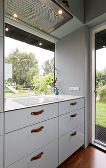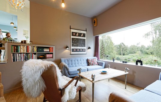 Samtlige 22 vinduer er bevidst forskellige og placeret, så der eksperimenteres med lysindfald og indramning af udsigten. En anden overraskende detalje er det asymmetriske køkken, som er et såkaldt IKEA-hack.