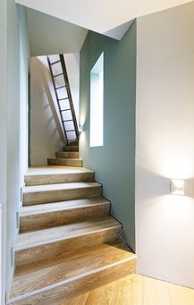 – Men det oplever man ikke, når man bevæger sig gennem rummene, da niveauerne er fordelt over fire trapper med hver fem trin, fortæller Mads.