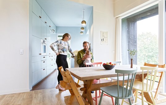 - Hvem bor her: Mette Adelørn Windfeldt, socialrådgiver, og Mads Adelørn Windfeldt, møbelsnedker og arkitekt samt børnene Aida, 5, Ebbe, 3, og Vera på 2½ måned