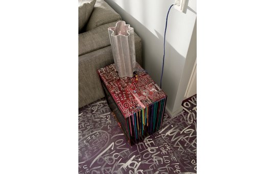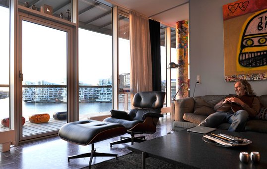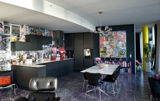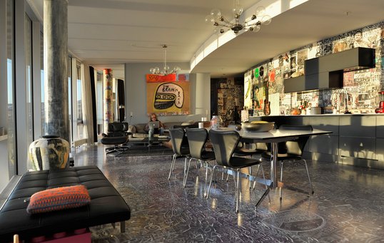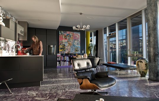 Ejerlejligheden i siloen var af glas, sildebensparket og stål, indtil Jan Klein og hans kone rykkede ind og skabte et levende kunstværk, der er og fylder hjemmet. Klein elsker både design, musik, popkultur og provokerende samfundskunst – og det spænder ikke stille af.