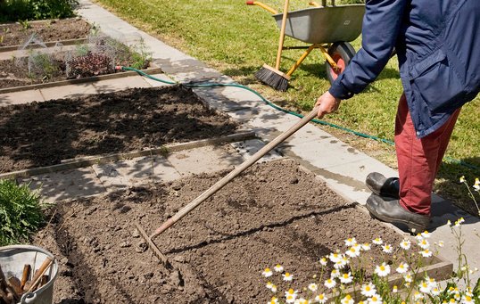 Haven er også til nytte. Her er Anne Marie ved at gøre klar til at så ærter.