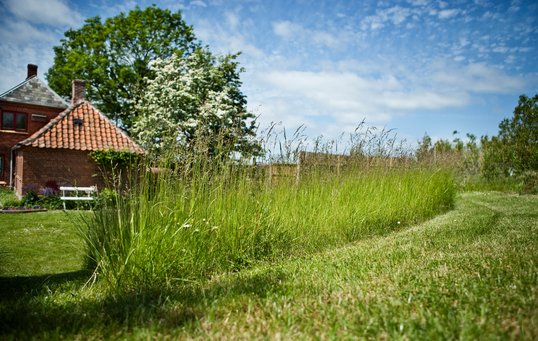 Det har også været meget vigtigt for os, at vegetationen afspejler stedet, naturen og ikke mindst vores respektive familiers historie. Således har vi plantet roser, der stammer fra min familie, og en del stauder fra Eriks slægtsgård, siger Anne Marie.