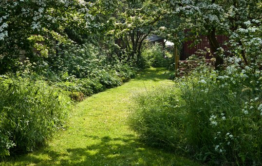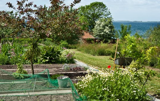 - Vi var enige om, at vores have både skulle være en pryd- og en nyttehave, og samtidig var vi meget ivrige for at få en vegetation, der også ville fremme et dyre-, fugle- og insektliv.