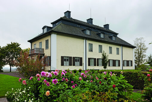 Da Selma Lagerlöf købte sit barndomshjem, Mårbacka, tilbage i 1907, var det et rødmalet træhus. Med tiden fik forfatteren gjort bygningen større, givet det en pudset facade og tilføjede prangende søjler og balkoner. Foto: Julie Vöge